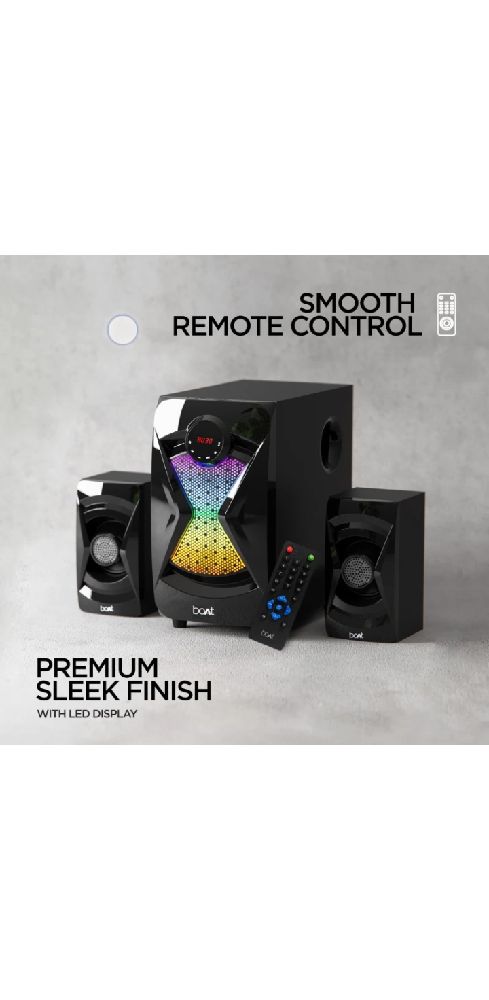 Experience immersive sound with the boAt Blitz 1500 / Blitz 1508 Multimedia Home Theatre. With 50W of power and Bluetooth connectivity, you can easily stream your favorite music wirelessly. The sleek design and powerful bass make this the perfect addition to any home entertainment setup. Bring the cinema experience to your living room with boAt Blitz 1500 / Blitz 1508 Home Theatre.