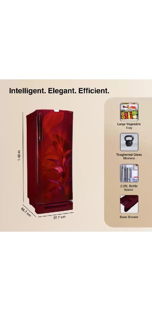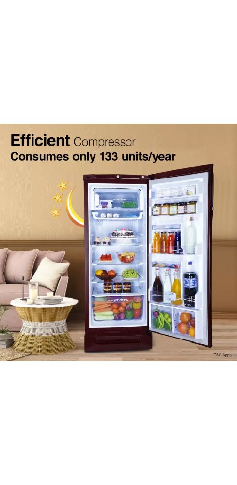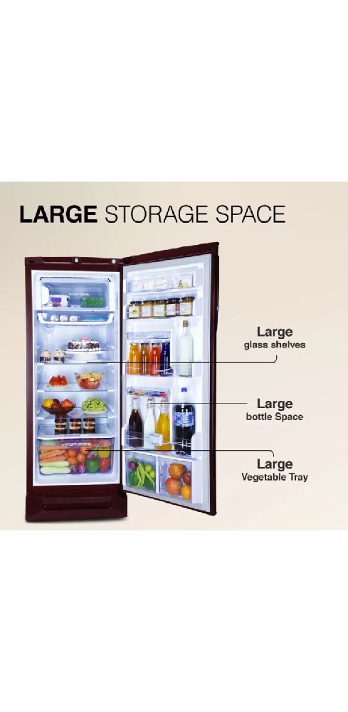 The Godrej 234 L Direct Cool Single Door 3 Star Refrigerator is designed with a large vegetable tray for ample storage of fresh produce. It features faster cooling and efficient ice-making capabilities, making it a convenient and effective option for keeping your food fresh and your drinks cold.