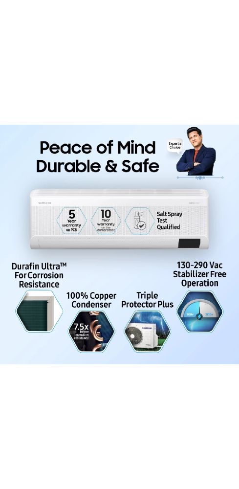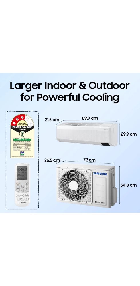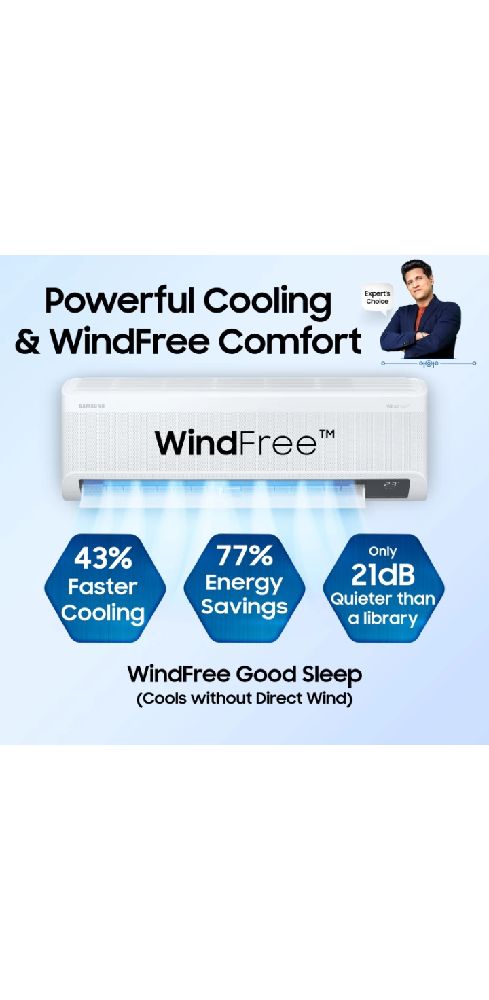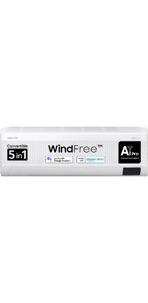 Experience ultimate comfort with the SAMSUNG Convertible 5-in-1 Cooling 2024 Model AC. This 1.5 Ton, 3 Star Split Inverter AC features WindFree Technology for whisper-quiet cooling. With Wi-fi Connect, you can control your AC from anywhere. Its sleek White design will complement any home decor.